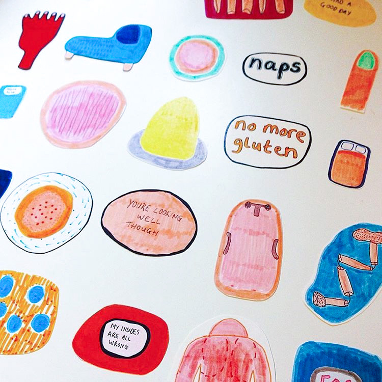 One of my favourite pieces was a collection of stickers documenting my daily life with chronic illness (and my love of microwave rice).