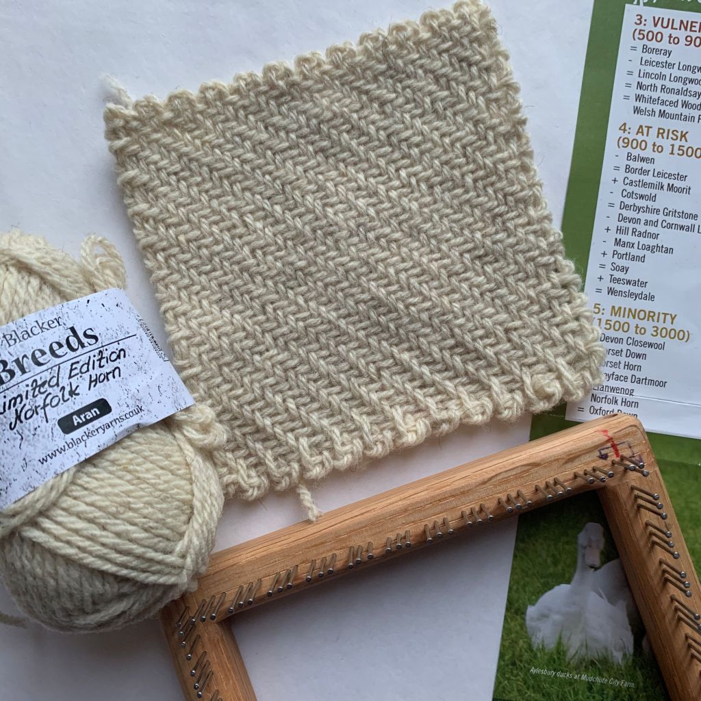 This year I continued with the wool theme but this time with weaving. I used a small pin loom to weave squares using the 25 british breed wools which are classified as rare by the Rare Breed Survival Trust. It was fun sourcing the wools, especially making contact with shepherdesses via social media and then working with wool from their favourite sheep. For the exhibition I wove a wall hanging using the rare North Ronaldsay (seaweed eating sheep from Orkney) as the warp and all the other rare breeds as the weft then sewed the individual squares on to that. I was really sad people weren’t able to see and feel all the different wool textures in the exhibition. The wall hanging is currently in Blend Coffee Lounge Dundee (unyil Jan 21), but I wouldn’t encourage touching it now either, what with ‘you know what’ still hanging around.