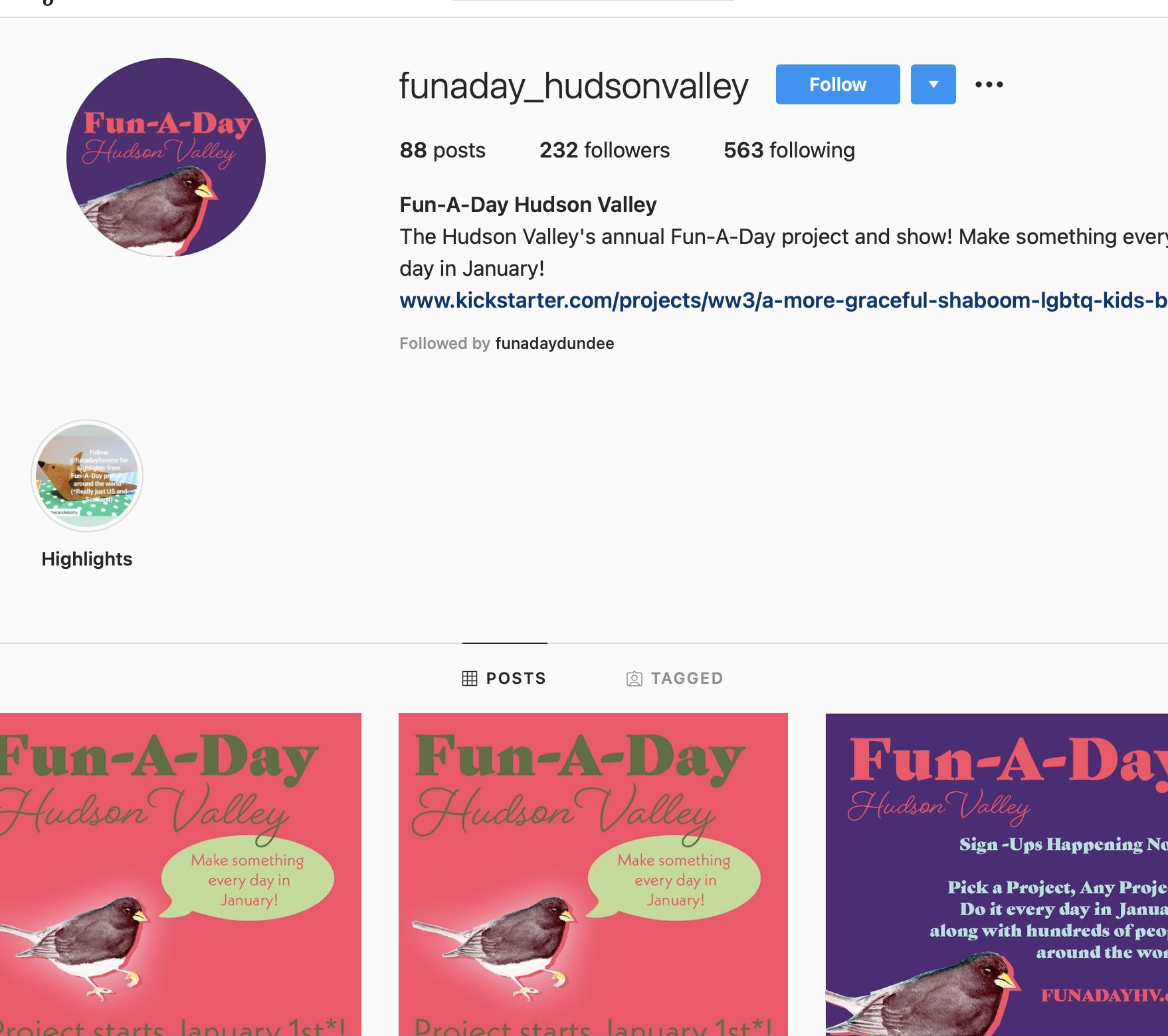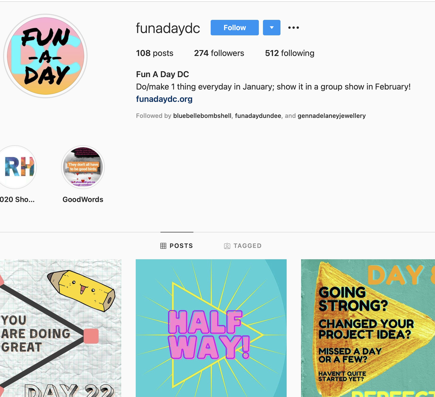 Did you know that Fun-A-Day concept originally began in America? It was introduced to the creative community of Dundee when Morgan Cahn, an American student studying at DJCAD decided to start something over here. The project in Dundee has grown and evolved enormously since then, but we love to stay connected with our Fun-A-Day community over ‘the pond’. It’s great to see how other communities and artists come together in a similar way in January and you too can follow the projects in places such as DC, Hudson Valley , Delaware and Philadelphia if you wish.