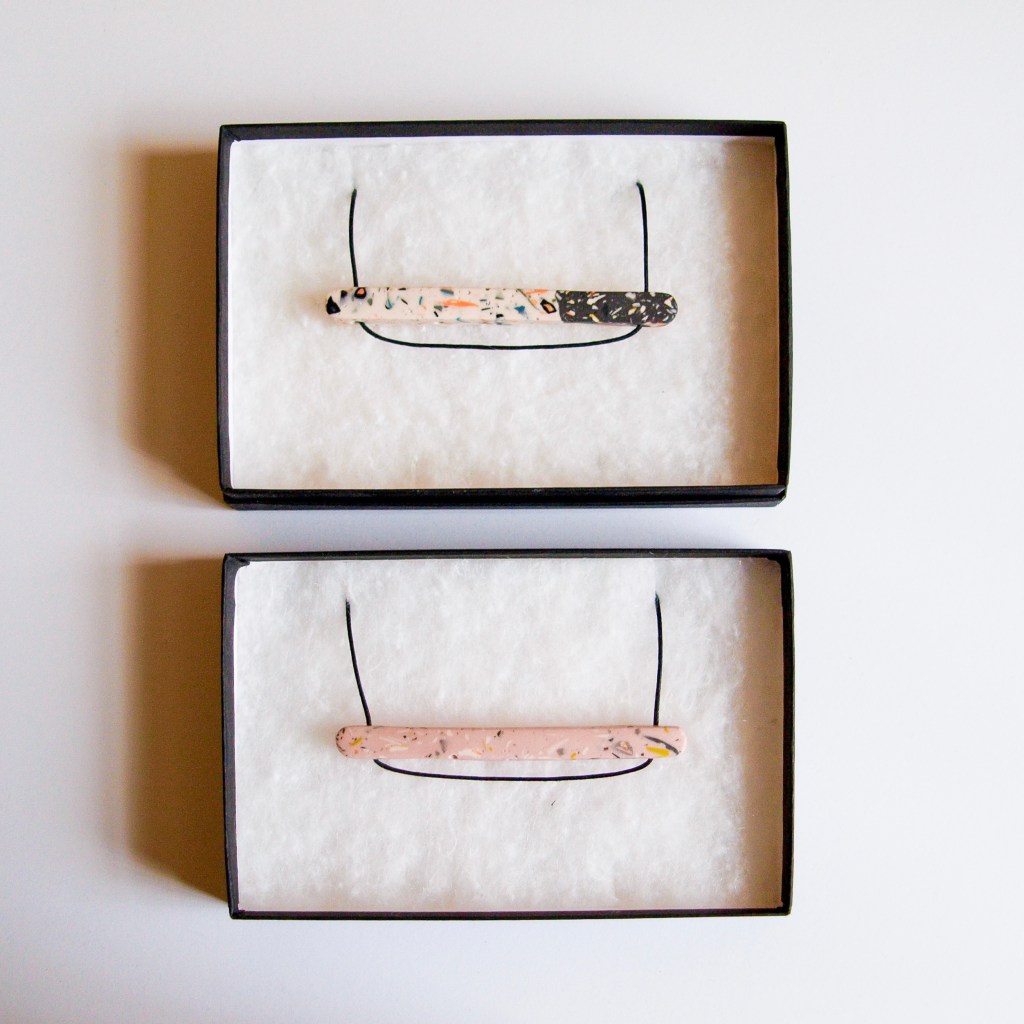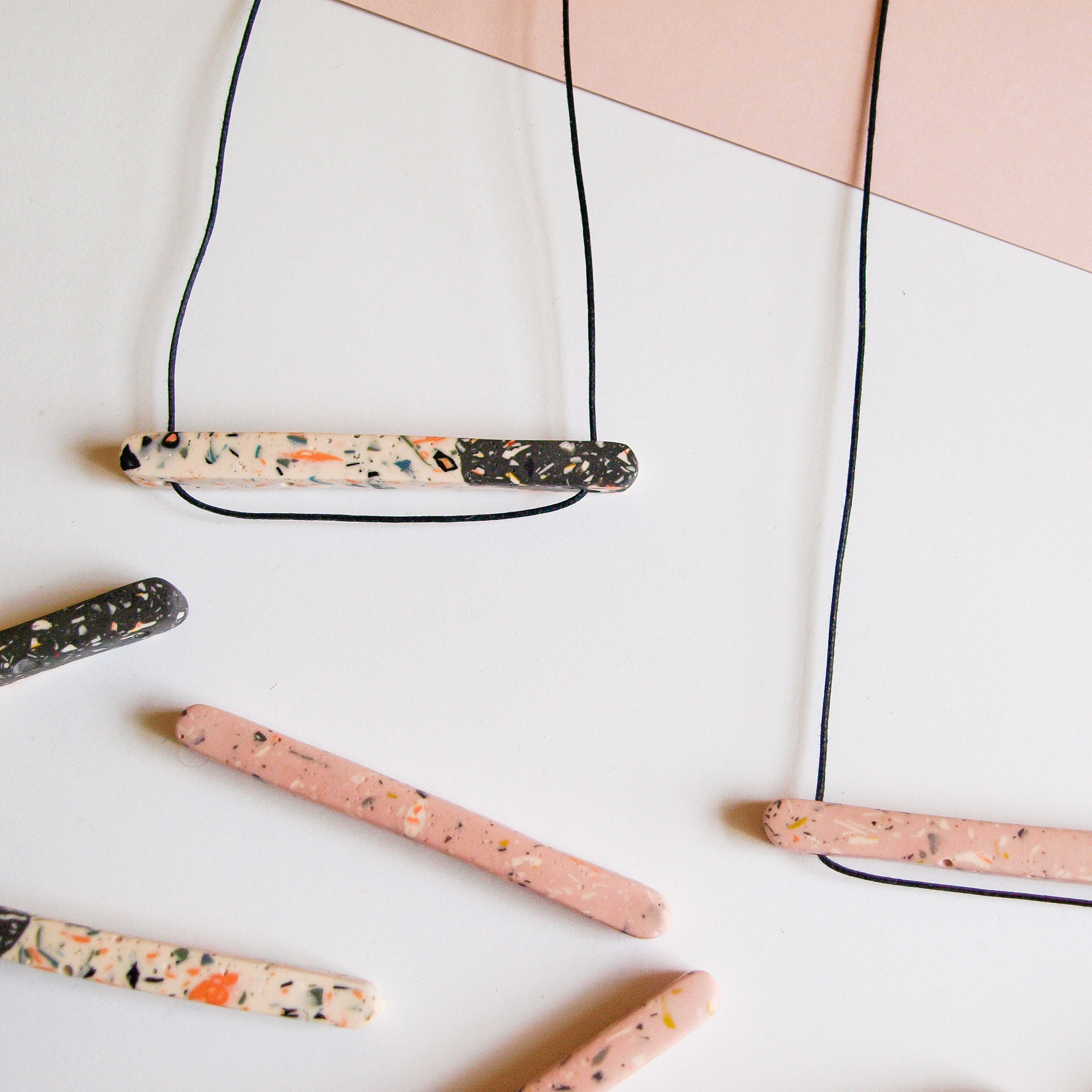These Jesmonite necklaces (as well as printing) were prominent in Woolly Jones’s project in January this year, and you could get your hands on one of these for free. We have 2 available (lilac & a white/grey) and if you answer this question correctly, you may be one of the random 2 we pick to win one.