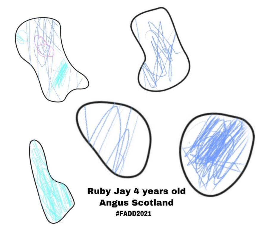 As part of the Fun A Day Dundee 2021 Online Exhibition, we had many of our amazing participants from the project join in over the weekend to provide activities, giveaways, virtual studio visits, paint-a-longs, visual designs and music! As we have a variety of people who join in every year, we always see a new collection of people, ensuring a varied selection of work and online activities!