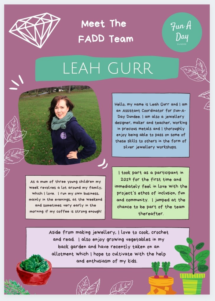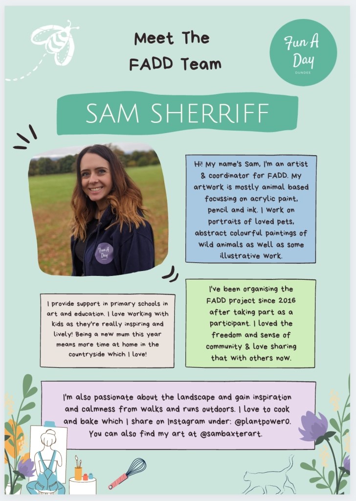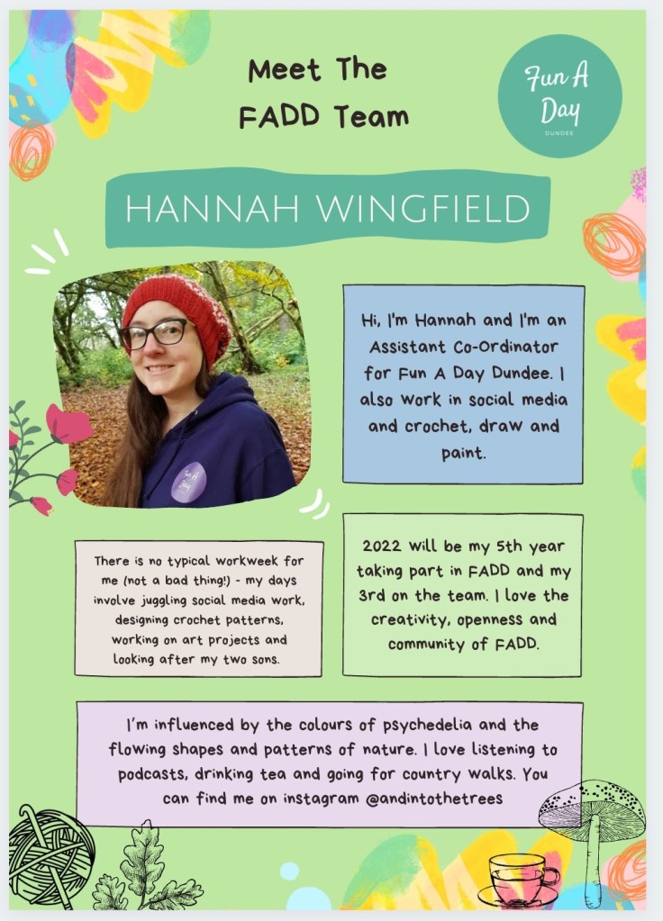 Here at FADD our Team all share the same values which encompass what Fun A Day is as a whole. We’re all previous participants ourselves, and we’re creative in many different ways. Sharing the positive experience with others that we all had from taking part is our mission.
