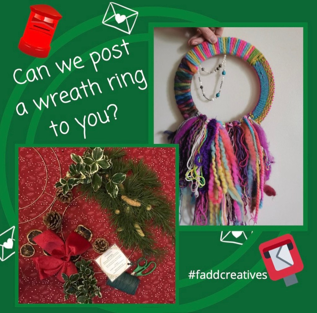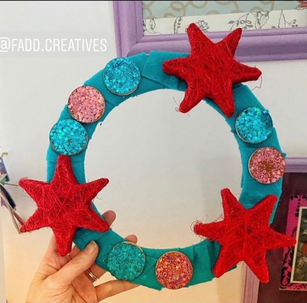 In the run-up to Christmas 2021 FADD Creatives hosted a project where we supplied wire wreaths to participants and invited them to decorate the wreath however they felt inspired! The wreaths could be collected from Blend, one of our favourite Dundee coffee shops and host to many a FADD meeting, or posted out to those who weren’t able to get into town.