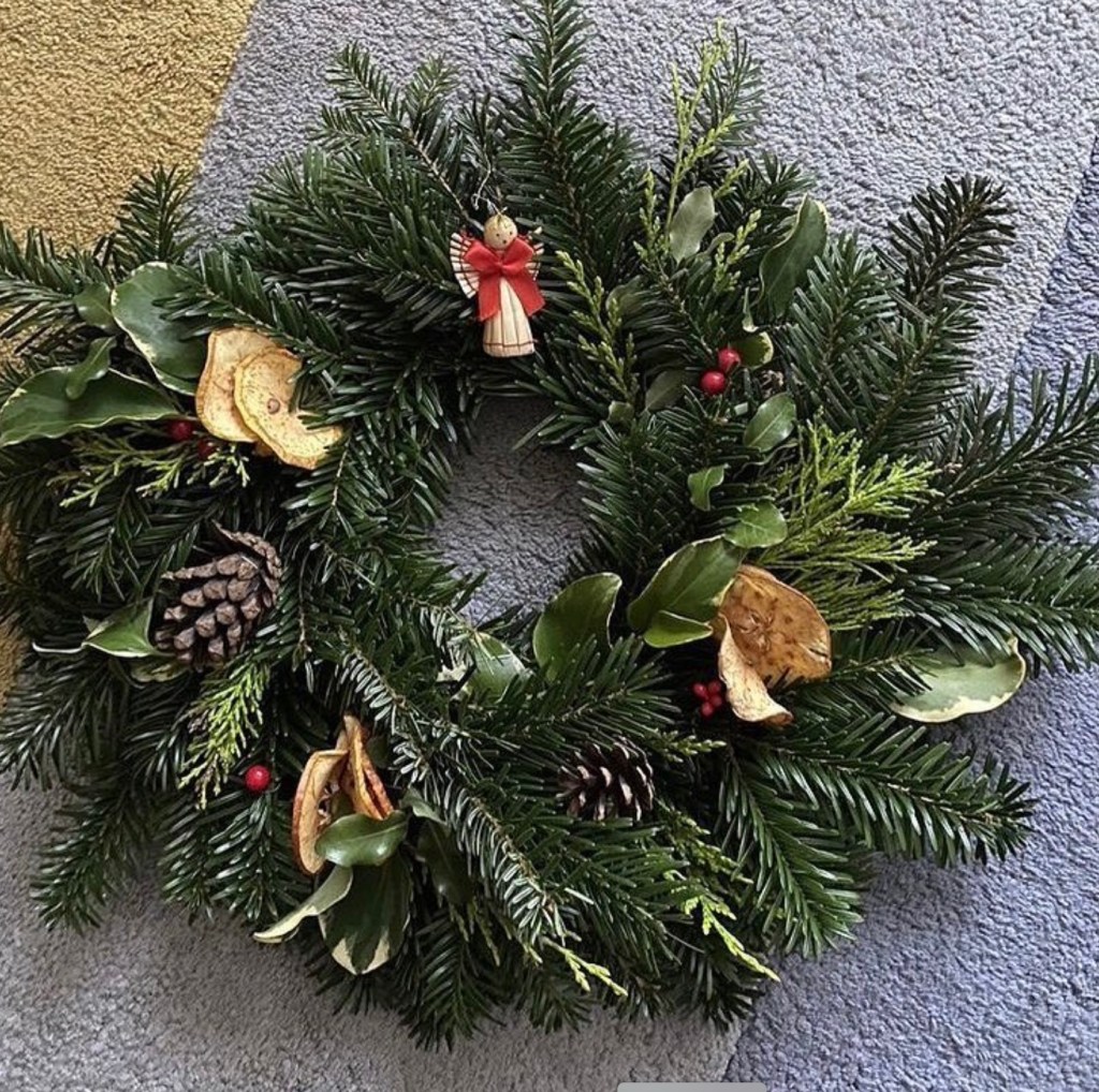 First up, here are some wreaths with lots of lovely traditional greenery. By Kyoshi Kreations (left) and @shonamasonmakes (right)